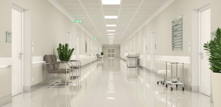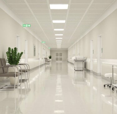 Cat tembok untuk rumah sakit dan fasilitas kesehatan lainnya memiliki standar keamanan dan kebersihan yang lebih ketat. Ruangan seperti ruang rawat inap, ruang operasi, laboratorium, dan klinik harus menggunakan cat yang tidak hanya aman secara kimiawi, tetapi juga tahan terhadap kegiatan pembersihan intensif.