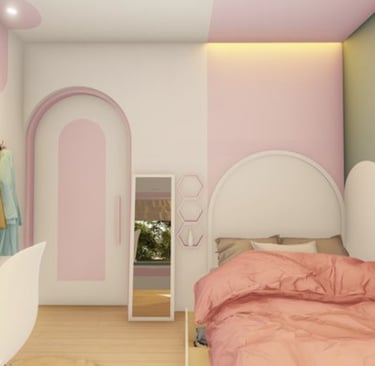 Pastel Ceria: Warna lembut seperti peach, kuning muda, dan lavender cocok untuk ruangan anak-anak.