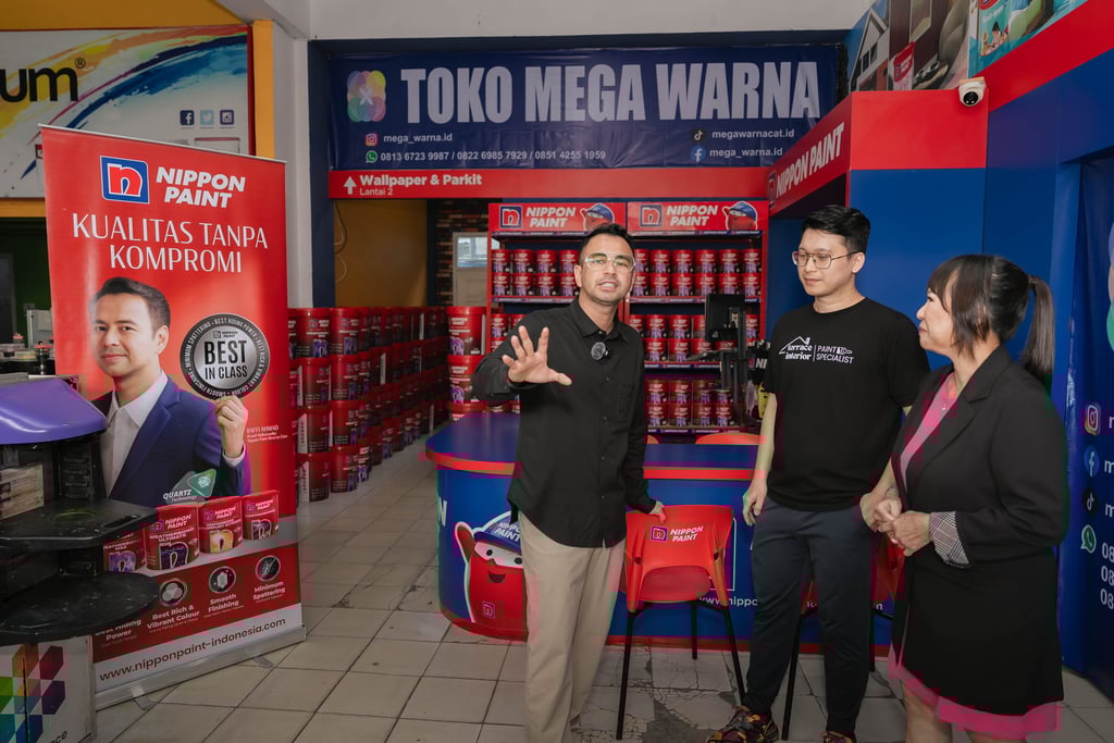 Dalam sambutannya, perwakilan Nippon Paint menyampaikan komitmen perusahaan untuk terus mendukung mitra toko seperti Megawarna dalam pengembangan usaha dan edukasi konsumen.