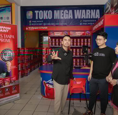 Acara dimulai pada pagi hari di dalam area Toko Cat Megawarna yang telah dihias dengan branding khas Nippon Paint. Para pengunjung, pelanggan, hingga mitra bisnis toko tampak antusias menyambut kedatangan Raffi. Suasana hangat dan kekeluargaan begitu terasa saat Raffi Ahmad berdialog langsung dengan pemilik toko.